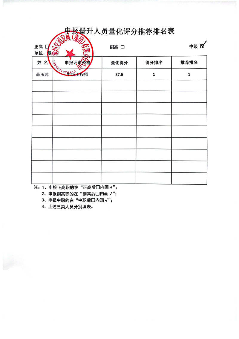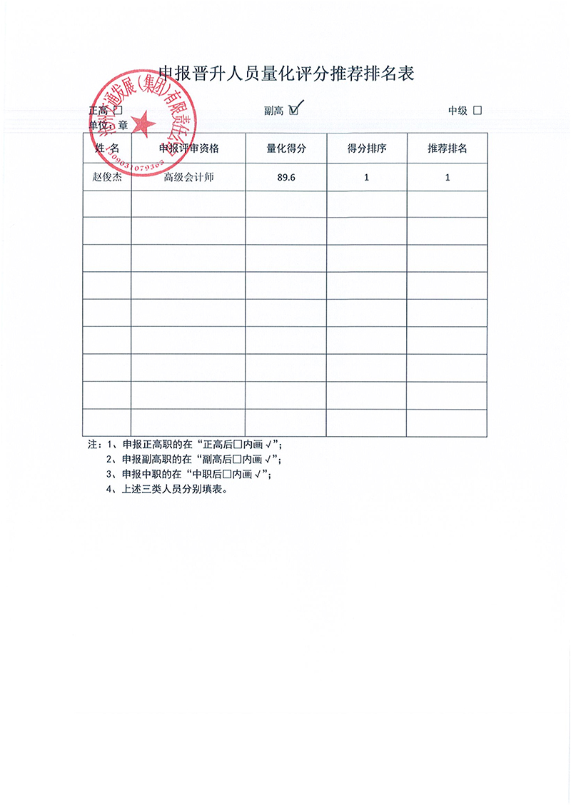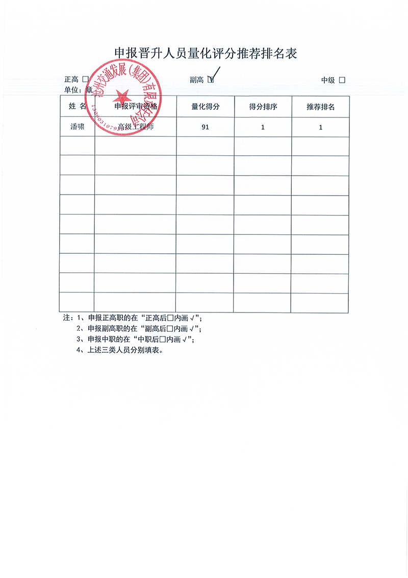 beat365正版唯一官网必一申报晋升人员量化评分推荐排名表