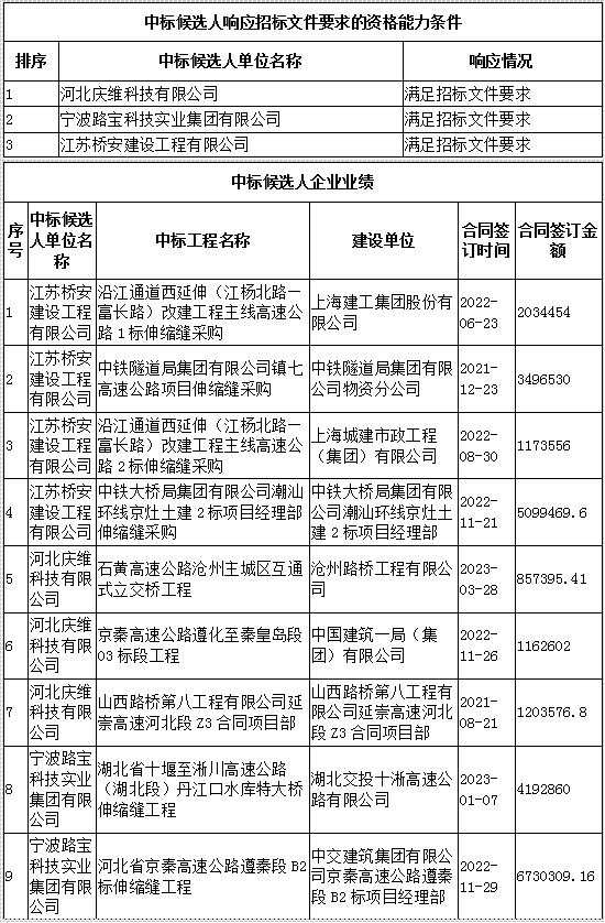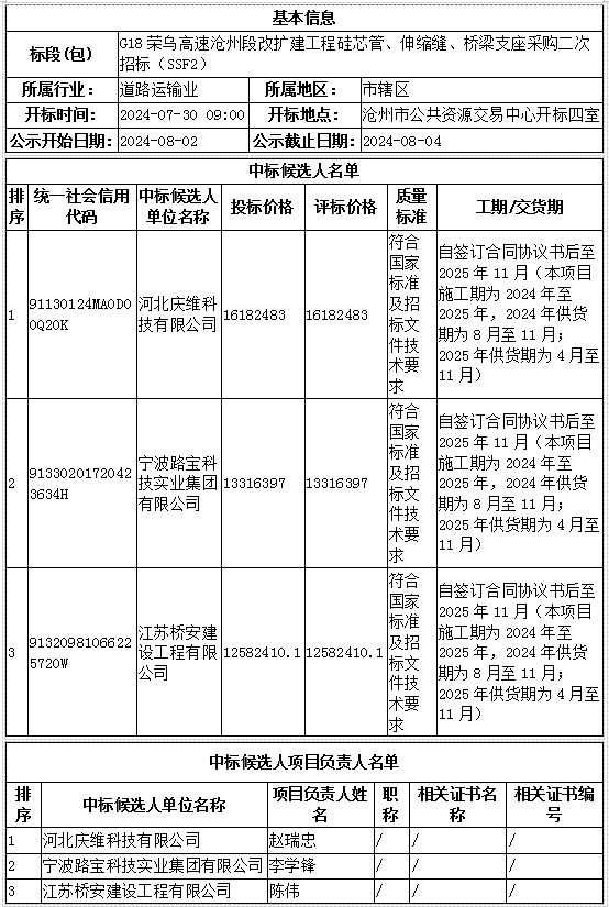 G18荣乌高速沧州段改扩建工程硅芯管、伸缩缝、桥梁支座采购二次招标(SSF2)